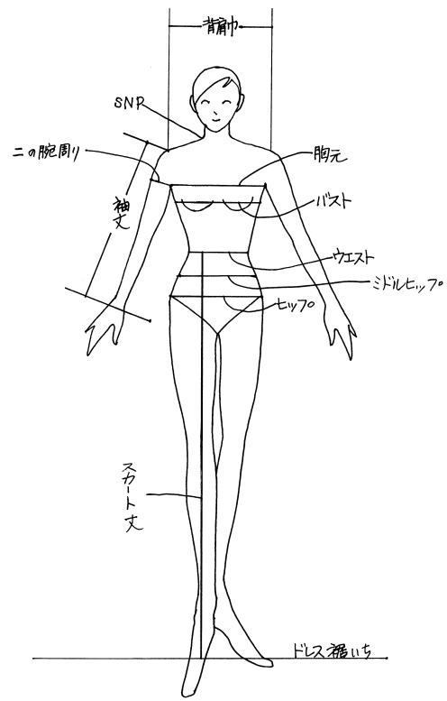 仮縫いのご試着確認をお願いいたします。できれば、右図のように、前・横・後ろの写メールをお願いいたします。お客様がお気付きでない箇所の補正も可能です。