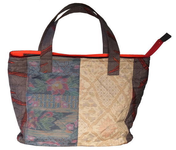 羽織リメイクコートの余り生地をパッチワークしてトートバッグにしました。