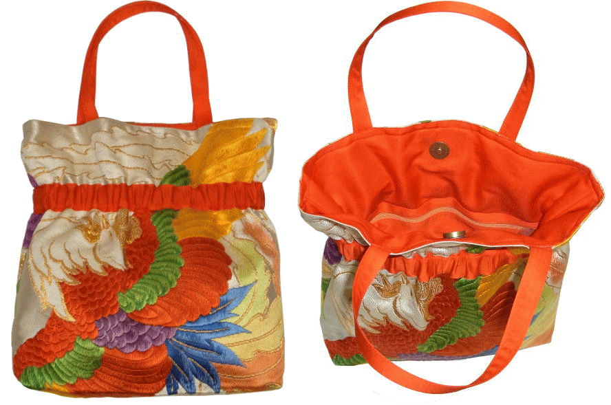 帯巾を利用したバッグです♪マグネット留めしています。