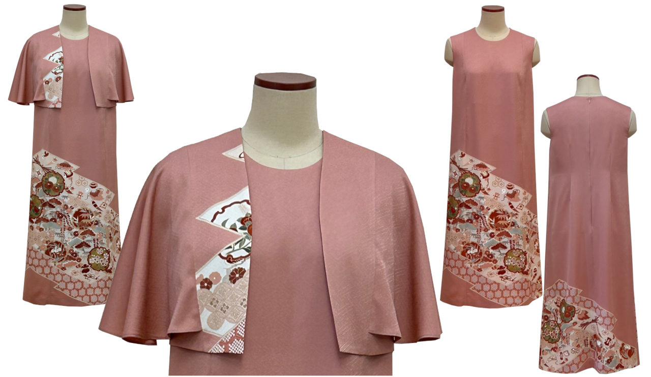 お母様の色留袖をノースリーブのワンピースとケープ風フレアー袖のボレロにリメイクなさいました。