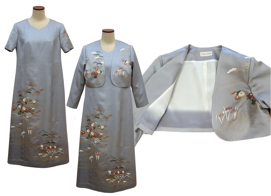 同じ着物生地で、ワンピースドレス以外にお仕立てが可能なアイテムを案内しています。合わせてご覧ください。