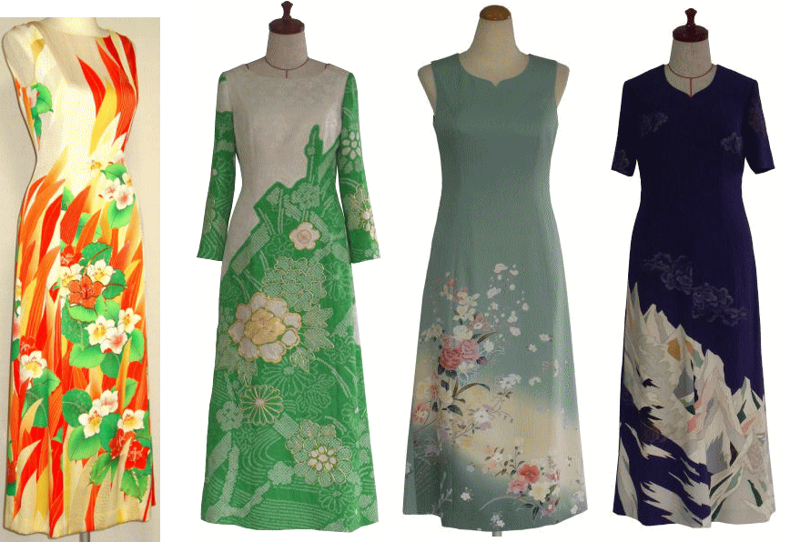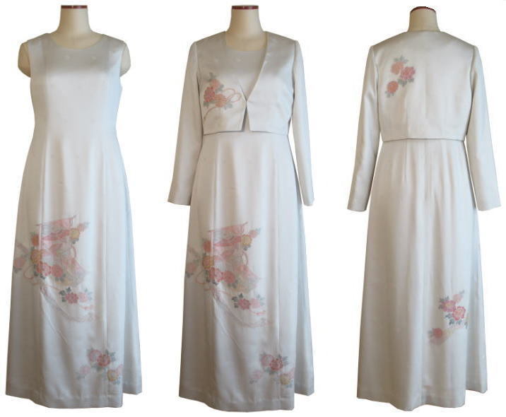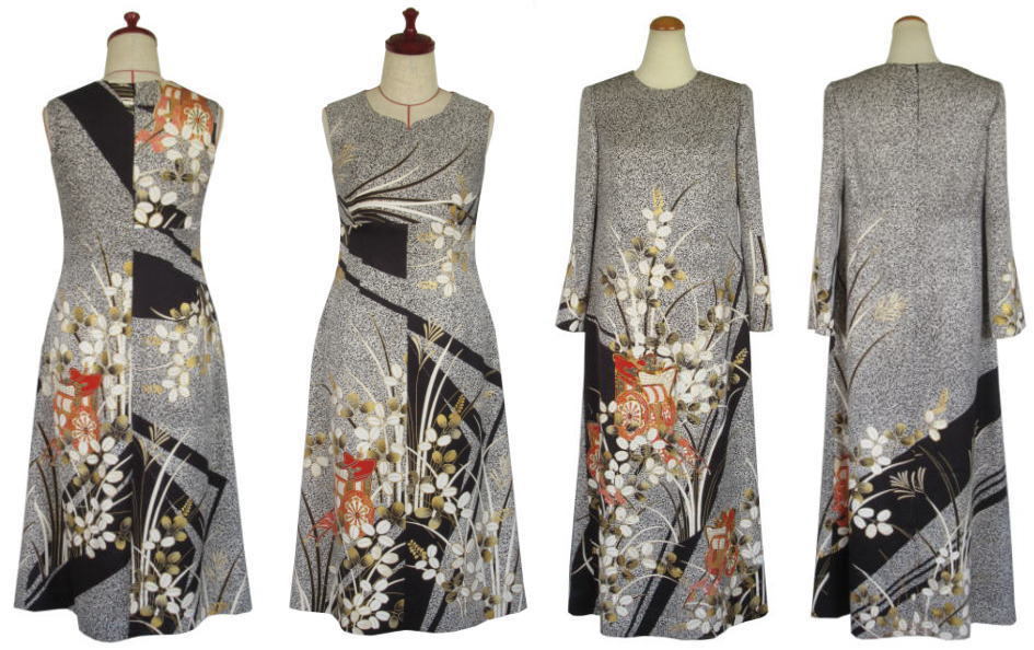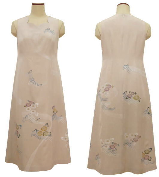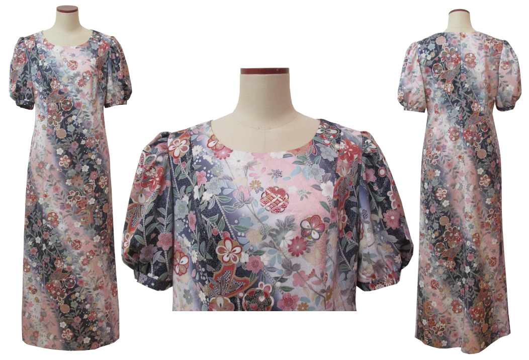 着物リメイクワンピースドレスー1でお仕立させていただきました実例を、お客様に許可を頂いて掲載させていただいています。参考になさって下さい。