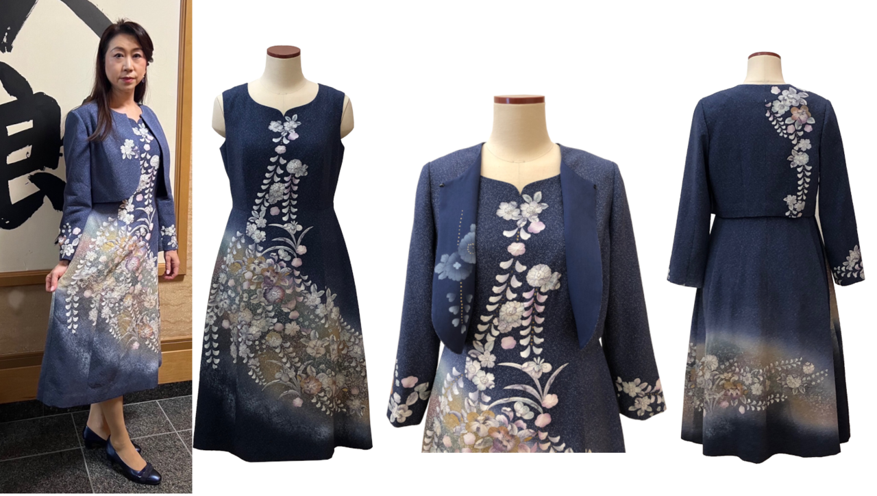 着物リメイクセミフレアードレスー6でお仕立させていただきました実例を、お客様の許可を頂いて掲載させていただいています。参考になさって下さい。
