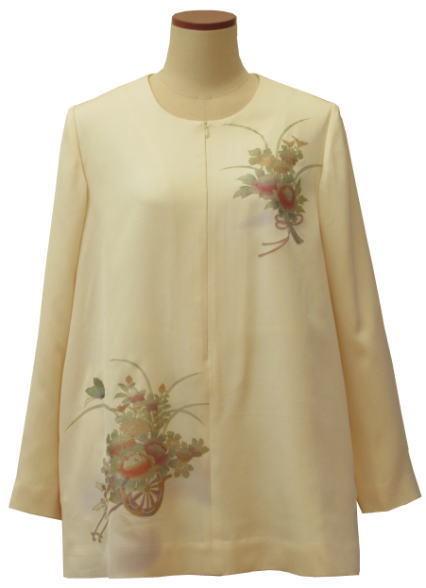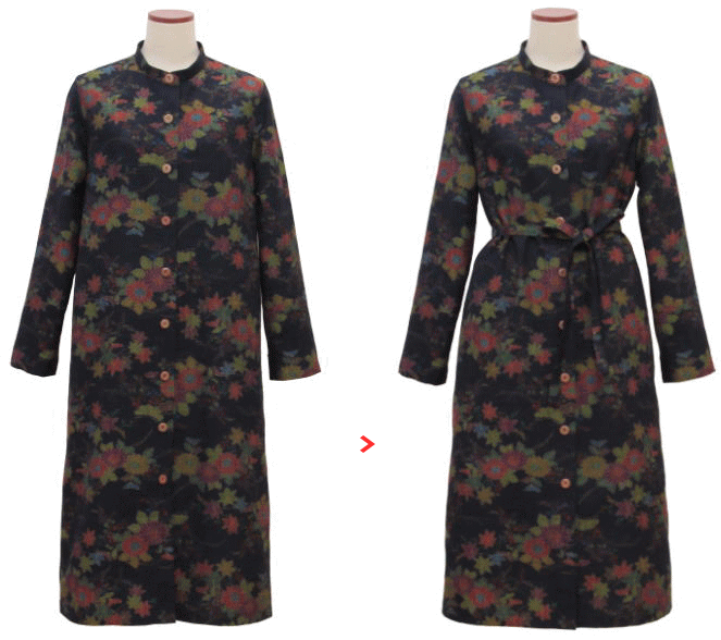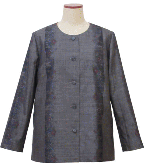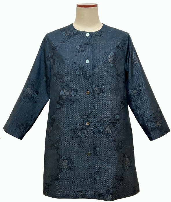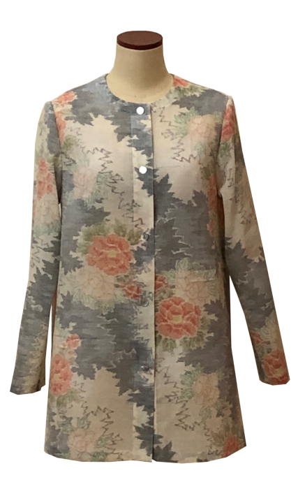 程よいサイズのコートジャケットです。気軽に羽織ってお出かけできます。全てのお着物、羽織からリメイク可能です。リメイク料はリーズナブルで、早いお仕立てが好評です。