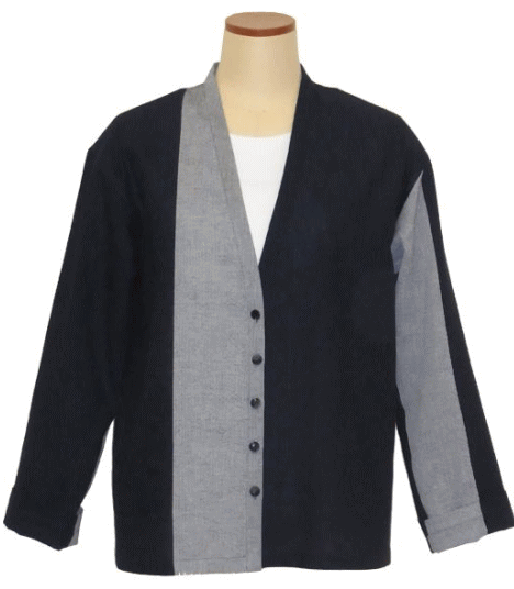 中に着るブラウスをエレガントなものにすると、ちょっとしたお出かけ着になりますし、余り生地でジャケットも作れます。