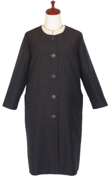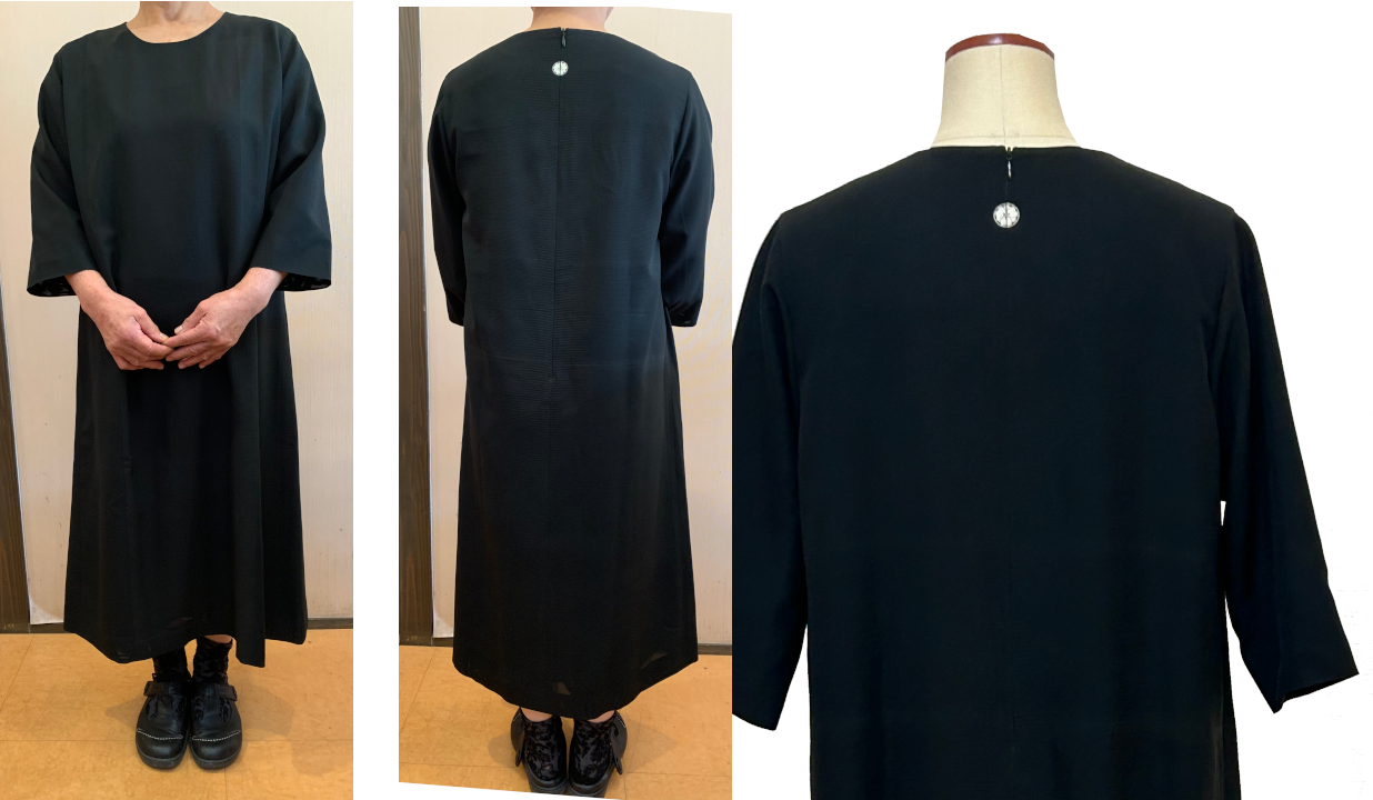 最もご注文いただいているデザインのワンピースです。程よい衿明のノーカラータイプです。