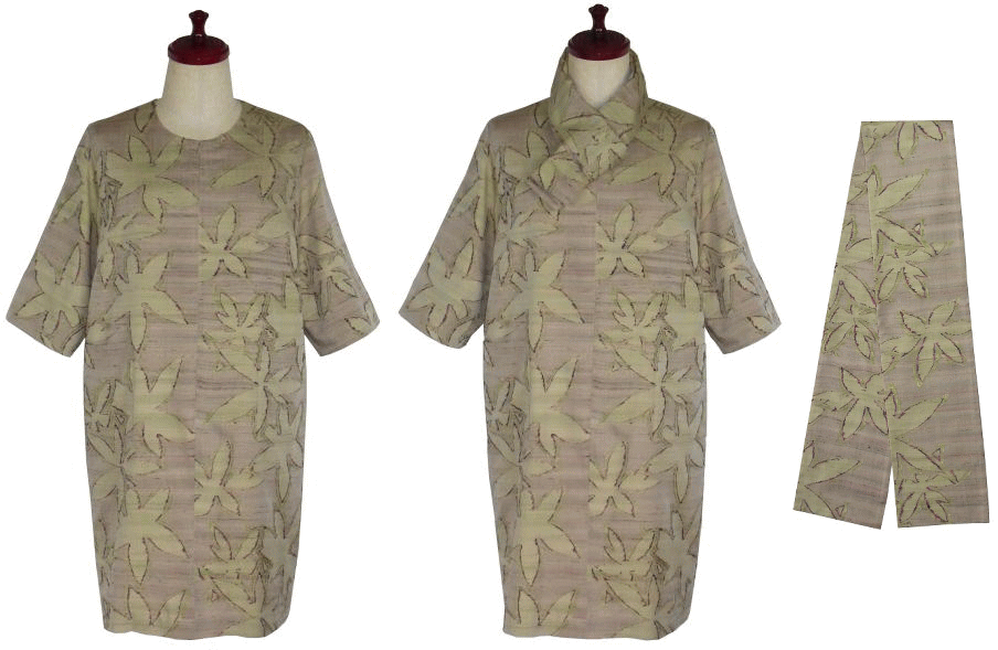 【着物リフォーム】規格サイズゆったりワンピースー2でお仕立させていただきました実例を、許可を頂いて掲載させていただいています。参考になさって下さい。