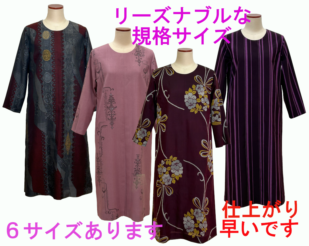 【着物リメイク】規格サイズゆったりワンピースー2でお仕立させていただきました実例を、許可を頂いて掲載させていただいています。参考になさって下さい。